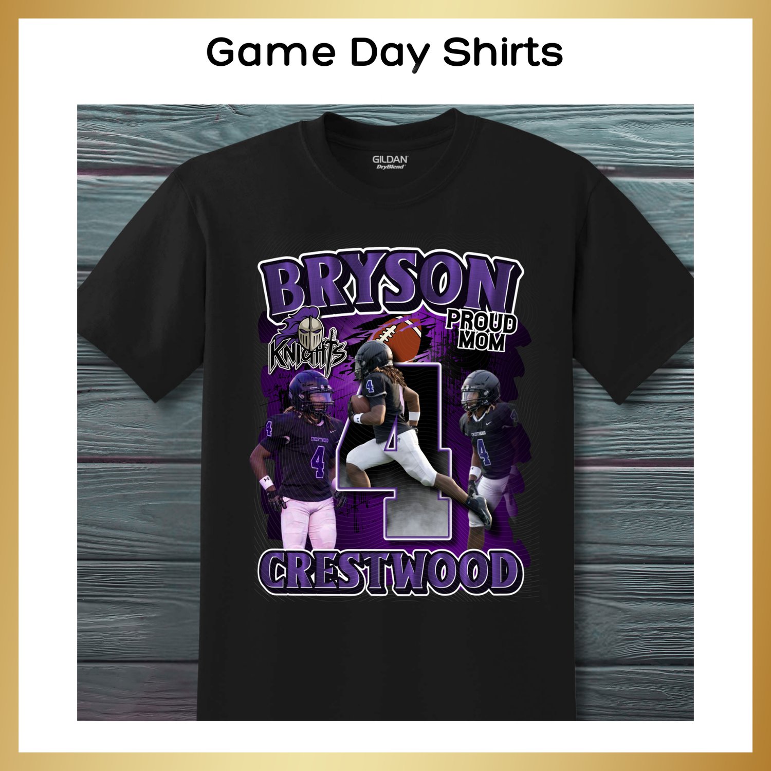Whether you are under the Friday night lights, courtside at the gym, or cheering from the sidelines, this Custom Game Day Shirt is the perfect way to support your high school or college athlete.