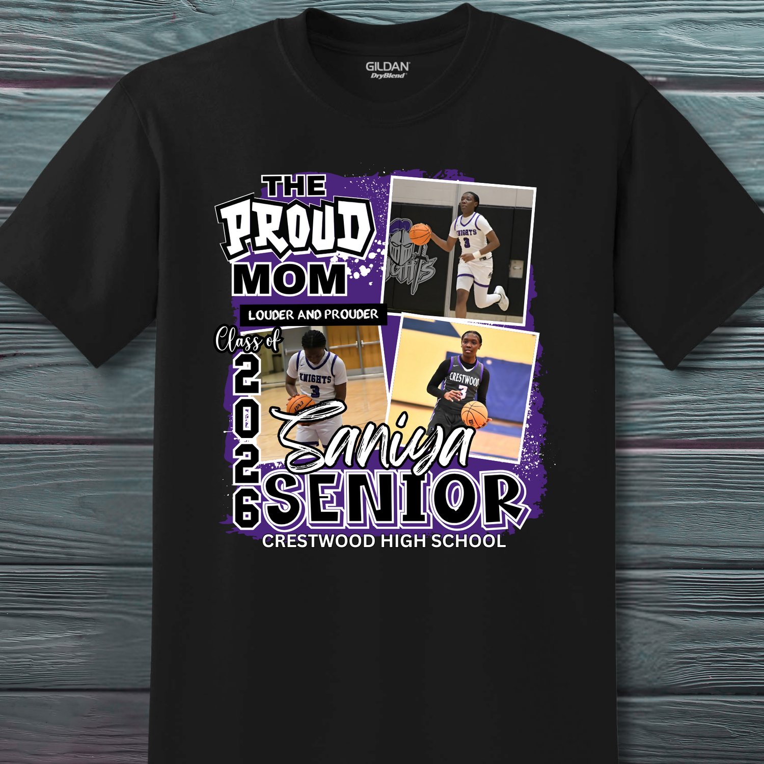 Why choose a custom Senior shirt? This design allows you to showcase your student's journey. You can feature senior portraits, action shots from their sport, or candid memories. It is fully customizable with their name, school colors, and graduation year.
