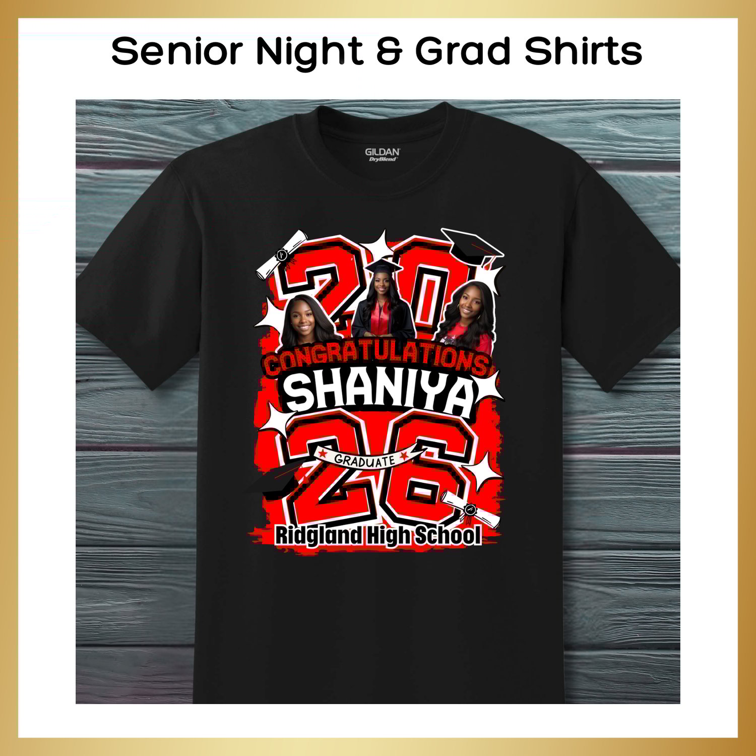 Celebrate your senior's biggest milestone with a custom shirt that captures the memories. Whether they are walking across the graduation stage or walking onto the field for their final home game, these custom shirts are the perfect way to honor their hard work and dedication.